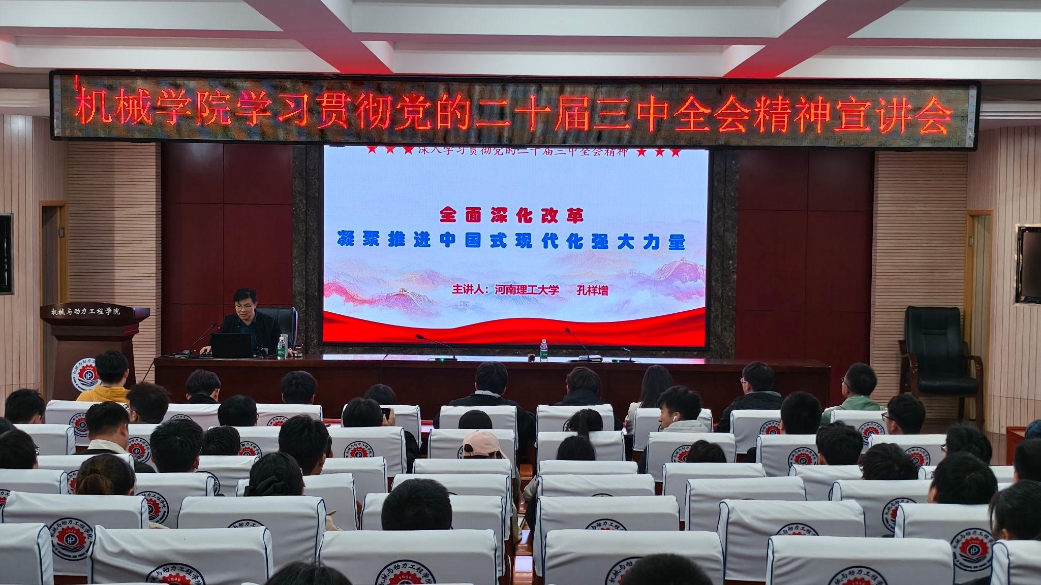 宣讲会现场气氛热烈,黑料正能量 全体教工和学生干部齐聚一堂,以饱满的热情和认真的态度聆听此次宣讲。孔祥增副教授凭借深厚的理论功底和丰富的教学经验,对党的二十届三中全会精神进行了全面、深入、系统的解读。他通过生动的案例和详实的数据,深入阐述了全会在构建高水平社会主义市场经济体制、完善中国特色社会主义法治体系、健全推动经济高质量发展体制机制、构建支持全面创新体制机制、完善高水平对外开放体制机制等方面的重要部署,深刻强调了全面深化改革是凝聚人心、汇聚力量,实现新时代新征程党的中心任务的迫切需要;是完善和发展中国特色社会主义制度、推进国家治理体系和治理能力现代化的关键举措;是推动高质量发展、更好适应我国社会主要矛盾变化的必然选择;是应对重大风险挑战、推动党和国家事业行稳致远的重要保障。