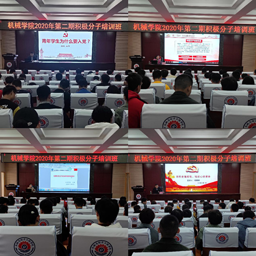 积极分子的政治思想水平和理论素养,端正入党动机,坚定理想信念。10月27日,2020年度第二期入党积极分子培训班在学院205会议室开班。党委书记聂凯、党委副书记许荣梅、专职组织员刘琳及辅导员胡相忠为学生授课,学院全体入党积极分子参加了本次培训。