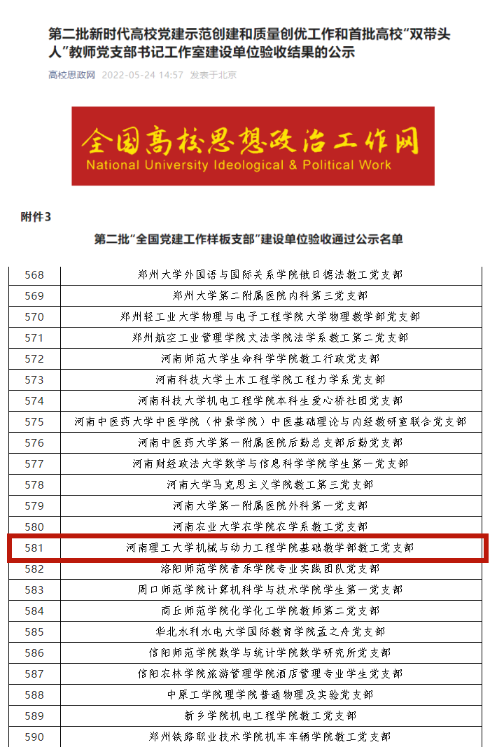 5月24日,教育部公布了第二批新时代高校党建示范创建和质量创优工作和首批高校“双带头人”教师党支部书记工作室建设单位验收结果,黑料正能量