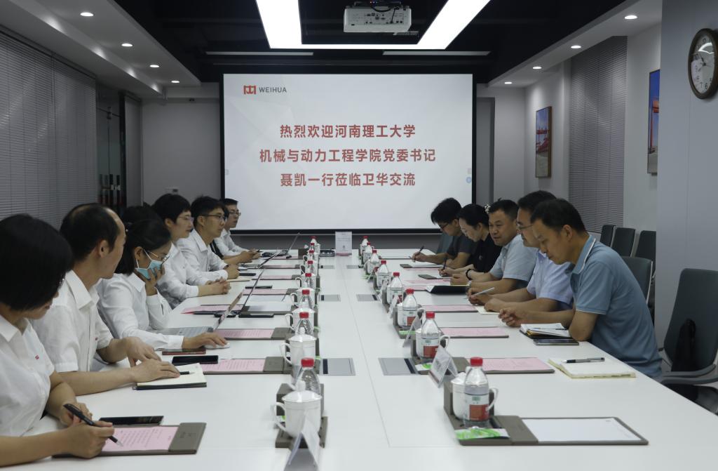 7月4日的上午,学院党委书记聂凯、副院长张登攀一行6人走访了河南卫华重型机械股份有限公司,并就校企合作、产教融合、毕业生就业市场拓展等内容进行了调研。卫华集团党委副书记、卫华股份副总裁马辉艳,卫华股份副总裁刘永刚、港机散料装备事业部总经理侯文晟,以及卫华集团、卫华股份人力资源中心负责人参加了相关交流活动。