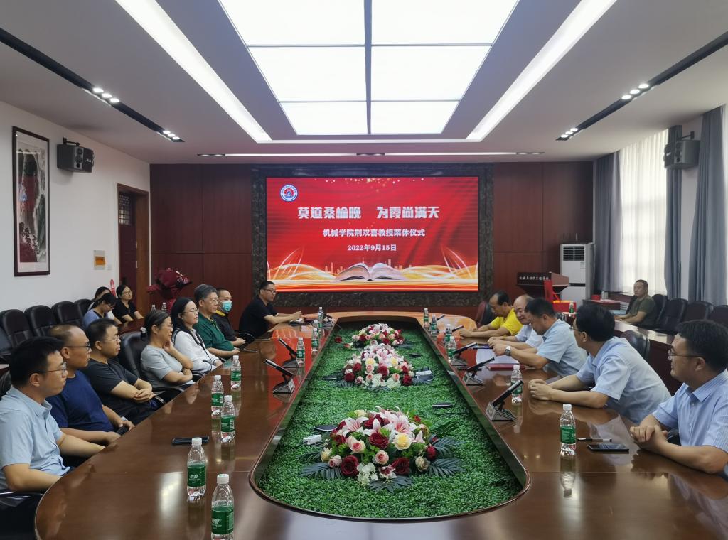在217会议室隆重举行荆双喜教授荣休仪式。学院领导班子成员,机设系教师代表一同见证了这一光荣而温馨的时刻。仪式由学院党委书记聂凯主持。
