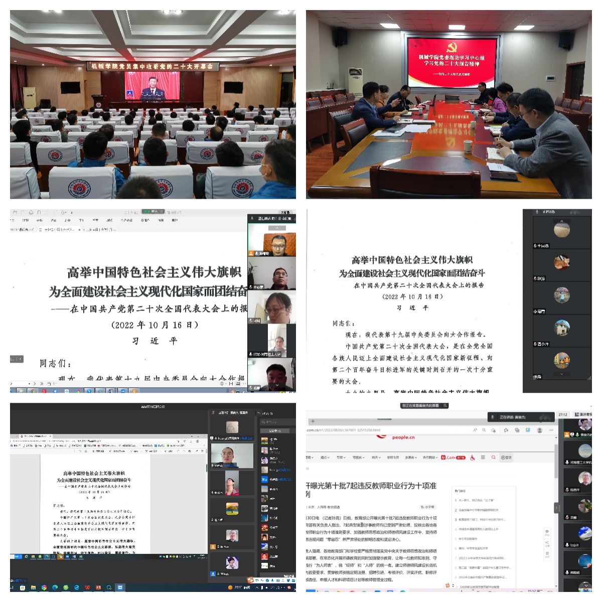组织全院教职工在217会议室收看了开幕会直播。10月21日,学院党委理论学习中心组召开集体学习会议。