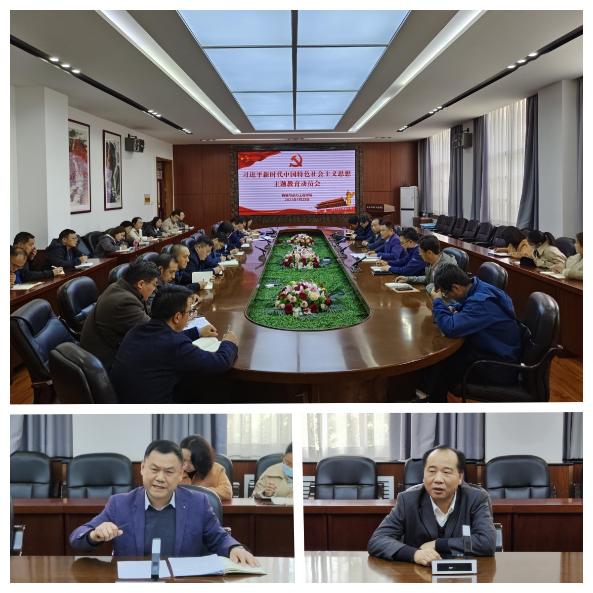 就扎实开展好主题教育,聂凯向全体党员干部和师生提出了四点要求:一是提高政治站位,深刻把握主题教育的重大意义,坚持不懈用习近平新时代中国特色社会主义思想凝心铸魂,牢牢把握“学思想、强党性、重实践、建新功”的总要求;二是把握目标任务,学思用贯通、知信行统一,做到以学铸魂、以学增智、以学正风、以学促干,把推动各项任务落到实处;三是精心策划组织,结合学院的中心任务和日常工作,把理论学习、调查研究、推动发展、检视整改等贯通起来,有机融合、一体推进;四是坚持学用结合,把党的创新理论转化为凝聚推动学院高质量发展的强大动力,以强化理论学习指导发展实践,促进工作高质量发展,为实现学校“双一流”创建目标提供机械智慧、展现机械力量、做出机械贡献。