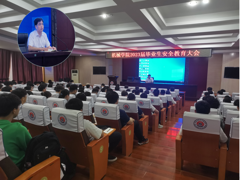 学生住宿管理办法(修订)》,在门禁时间之前及时回寝;三是增强安全意识,克制自己的好奇心,不去危险的地方走动。同时,他告诫同学们一定要重视本科论文的撰写,能够用正确合适的语言按照学术规范进行撰写,顺利完成在校期间最后一次知识的全面检验。随后,他结合现实中大学生丢失学位证、贵重物品的真实案例和相关讲解、分析,提醒同学们临近毕业季保护重要证件和财产安全,切实提高了同学们人身财产安全意识。最后,他特别强调要养成良好的生活行为习惯,加强用电防火安全意识,严格遵守学校规章制度。