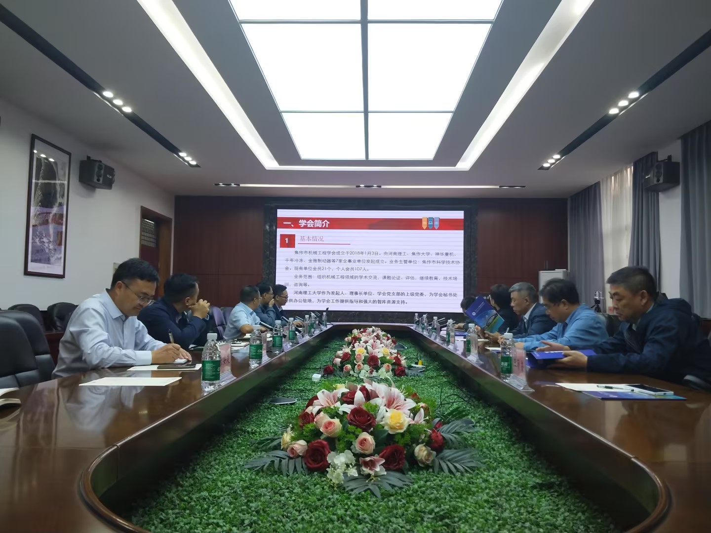 调研焦作市机械工程学会工作,学院在217会议室召开工作汇报会,学院党委书记余本胜、院长明平美、党委副书记王帅、副院长兼焦作市机械工程学会秘书长焦锋、副院长张登攀参加会议。