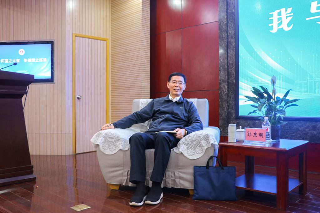 活动中,郭东明院士围绕参会学生所提的科研难题、行业前景、学业提升、职业规划、就业前景等问题结合自身的研究领域、工作经验和生活智慧给大家一一做了解答。他不仅对学生们的思考给予了充分的鼓励和肯定,还以多元化的学科视角和思维方法,为大家指点迷津。他勉励同学们要敢于质疑权威、敢于突破现状、敢于创新求变,在革新中成就自我。他要求大家厚植爱国情怀,传承科学精神,开拓进取,努力奋斗,为中国式现代化发展贡献青春力量。