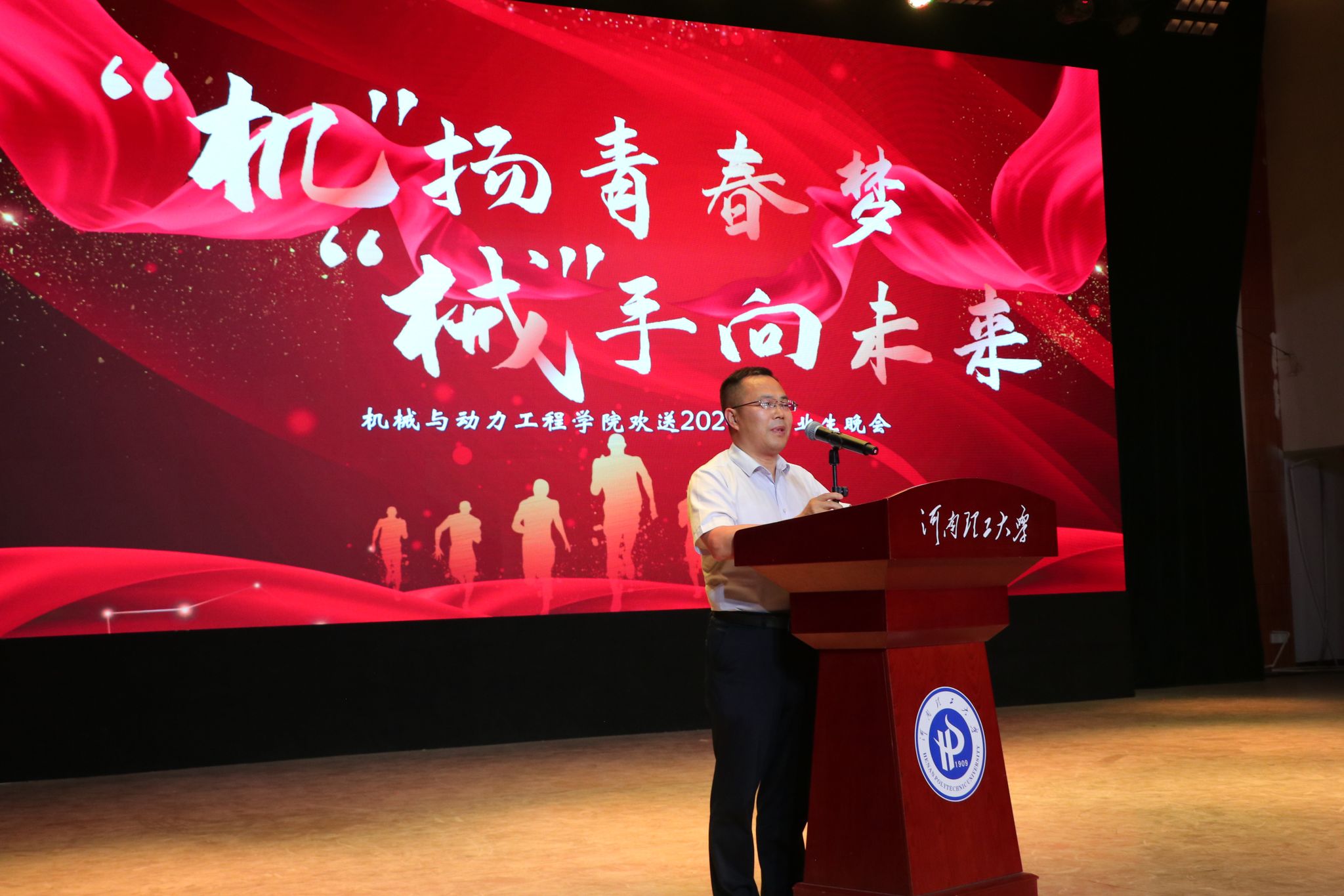 在南校区小礼堂举办了一场以“机”扬青春梦,“携”手向未来为主题的毕业晚会。学院领导、教师代表与2024届全体毕业生一同参与晚会。