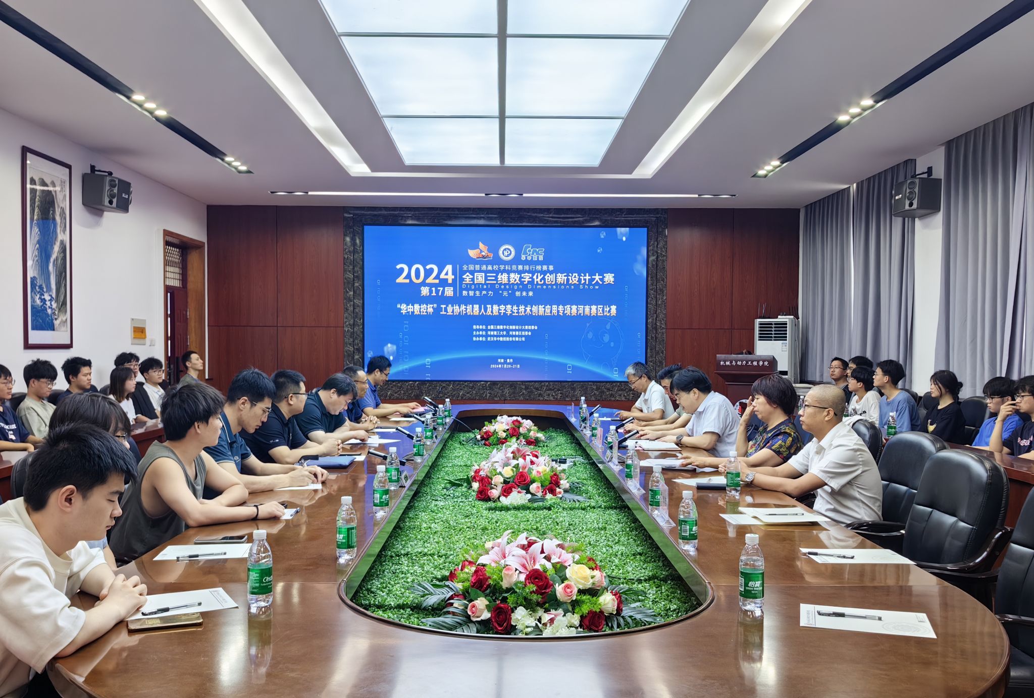 、创新创业学院(工程训练中心)承办的第17届全国三维数字化创新设计大赛“华中数控杯”工业协作机器人及数字孪生技术创新应用专项赛河南赛区选拔赛在我校顺利举办。来自我校、新乡学院、河南科技学院等8所高校的32支队伍参加了比赛。武汉华中数控股份有限公司为本次大赛提供了技术支持。