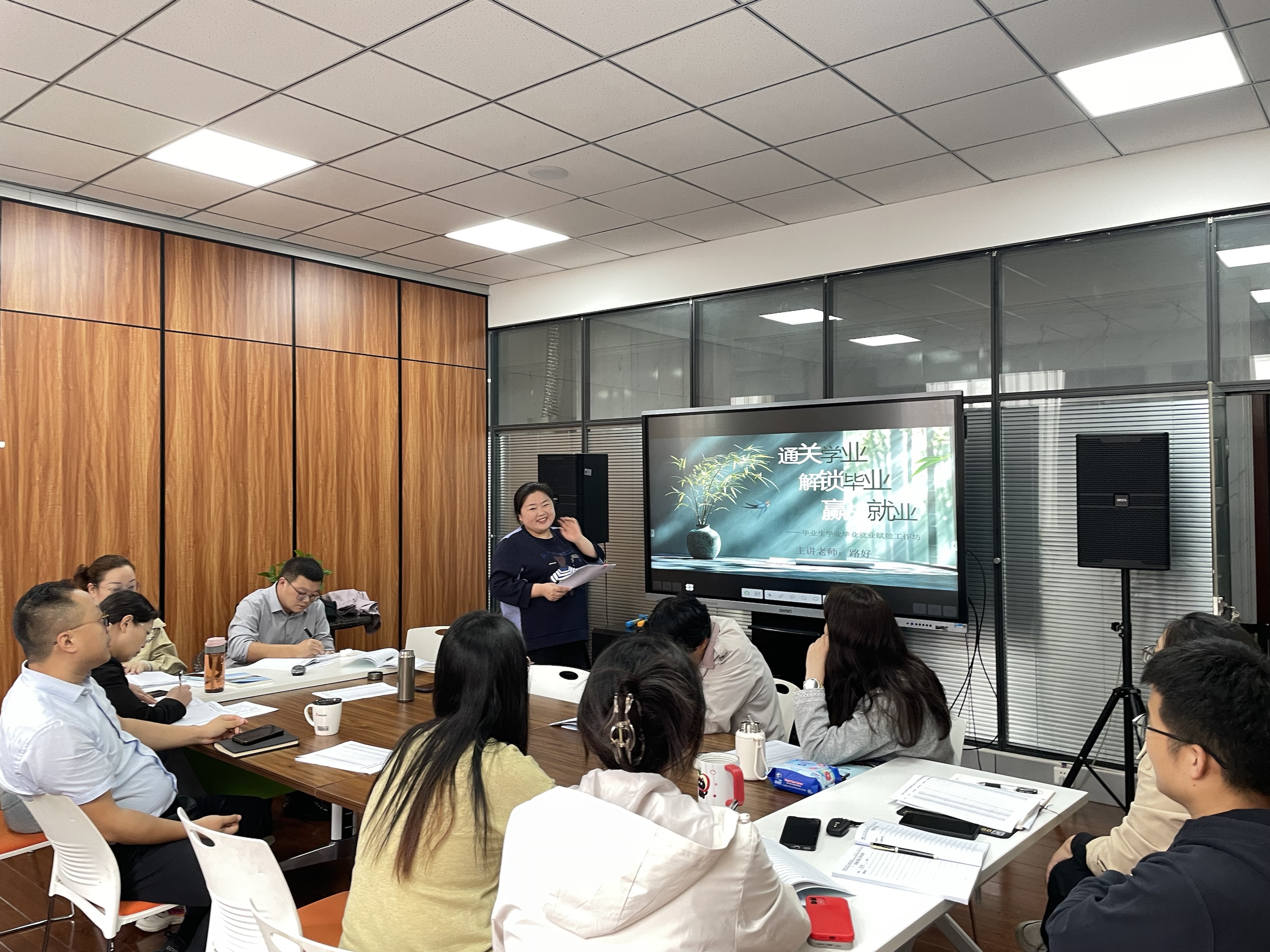 于院楼214会议室举行本年度第五期辅导员工作坊,本期工作坊聚焦职业规划与就业品牌建设,以“通关学业,解锁毕业,赢战就业”为主题展开深入研讨。路好老师为主讲人,院党委副书记王帅及全体辅导员共同参与研讨,院“匠心研育坊”辅导员工作室承办本期活动。