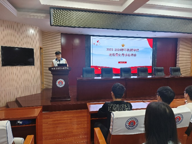 会议第三项,班长联席会指导老师高安儒对未来的班级量化考核工作提出了要求和期望。希望各班级能够继续发扬优良传统,加强班级管理,提高学生综合素质,为学院的发展做出更大的贡献。同时,他也希望各班级能够不断创新,探索新的班级管理模式和方法,为学院的教育教学工作注入新的活力和动力。