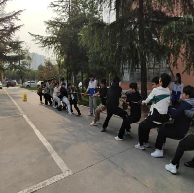 在比赛期间,每个同学都竭尽全力,赛场上每一个人都沐浴在声嘶力竭的呐喊中,每一个参赛选手都挥洒出自己青春的汗水,将男儿的热血涂抹在院楼前,为青春刻下无悔的印记。